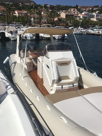 Le LOMAC 850 TURISMO arbore un design à la fois élégant et sportif, son grand pont offre un espace généreux pour se détendre et bronzer, tandis que son cockpit confortablement aménagé garantit une navigation agréable en toutes circonstances.
